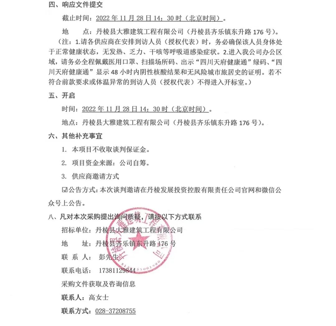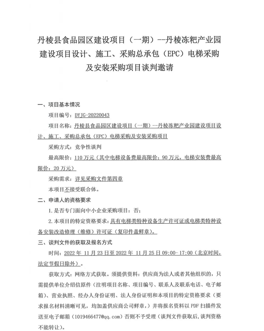 丹棱縣食品園區(qū)建設(shè)項(xiàng)目 (一期)--丹棱凍粑產(chǎn)業(yè)園建設(shè)項(xiàng)目設(shè)計(jì)、施工、采購總承包 (EPC) 電梯采購及安裝采購項(xiàng)目談判邀請公告