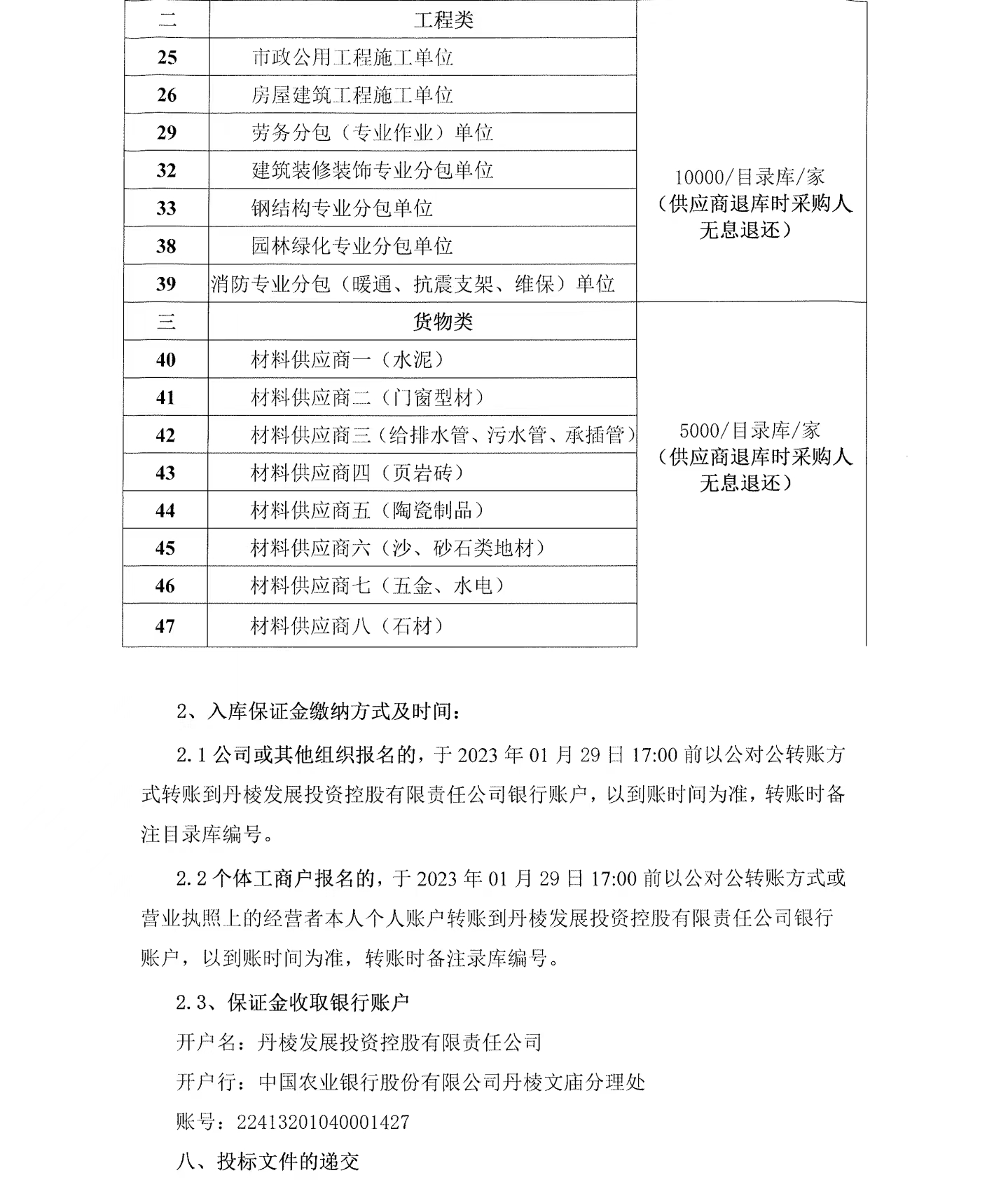 丹棱發(fā)展投資控股有限責(zé)任公司供應(yīng)商目錄庫(kù)補(bǔ)充入庫(kù)采購(gòu)項(xiàng)目投標(biāo)邀請(qǐng)公告