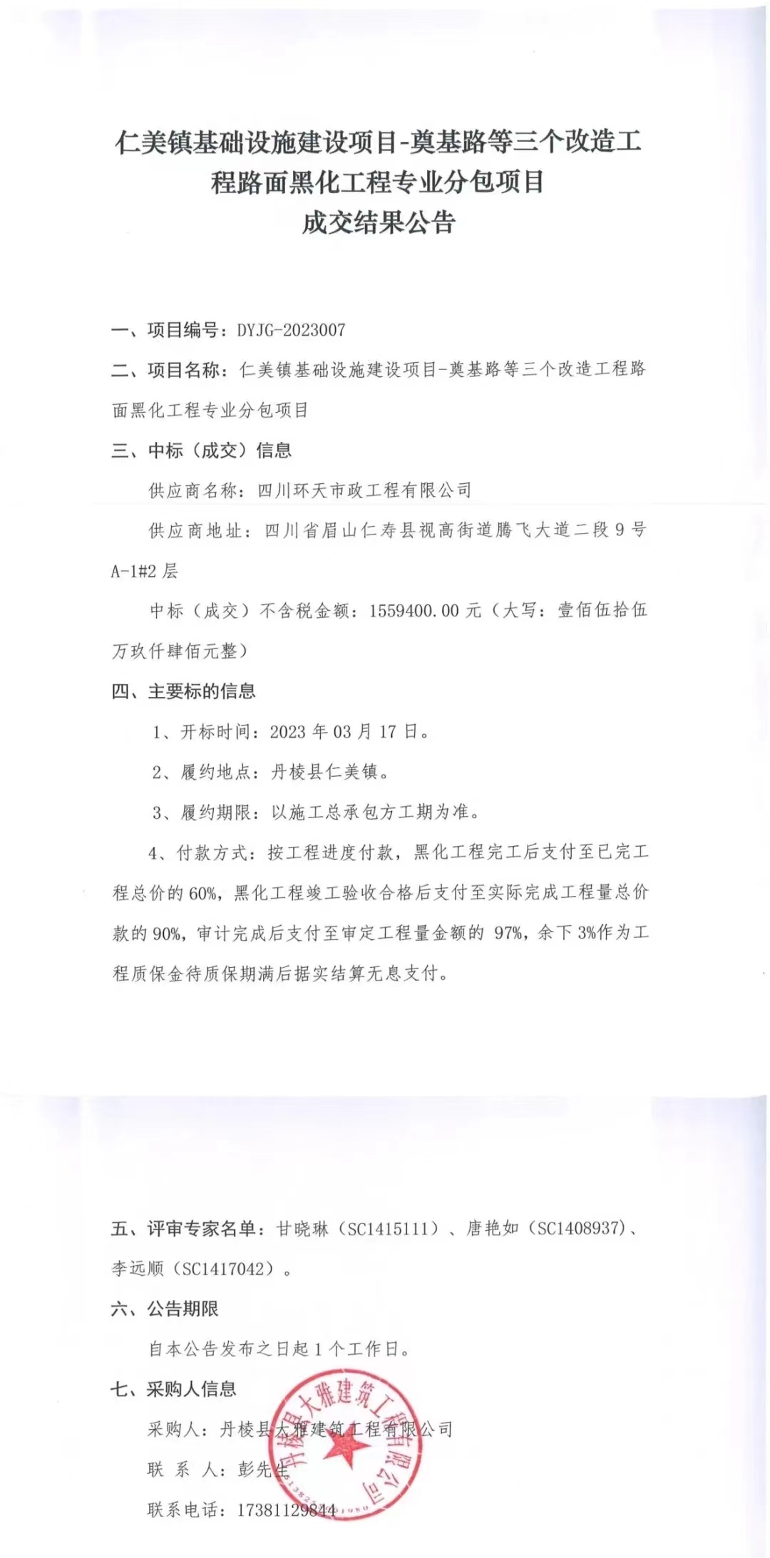 仁美鎮(zhèn)基礎(chǔ)設(shè)施建設(shè)項(xiàng)目-奠基路等三個改造工程路面黑化工程專業(yè)分包項(xiàng)目成交結(jié)果公告
