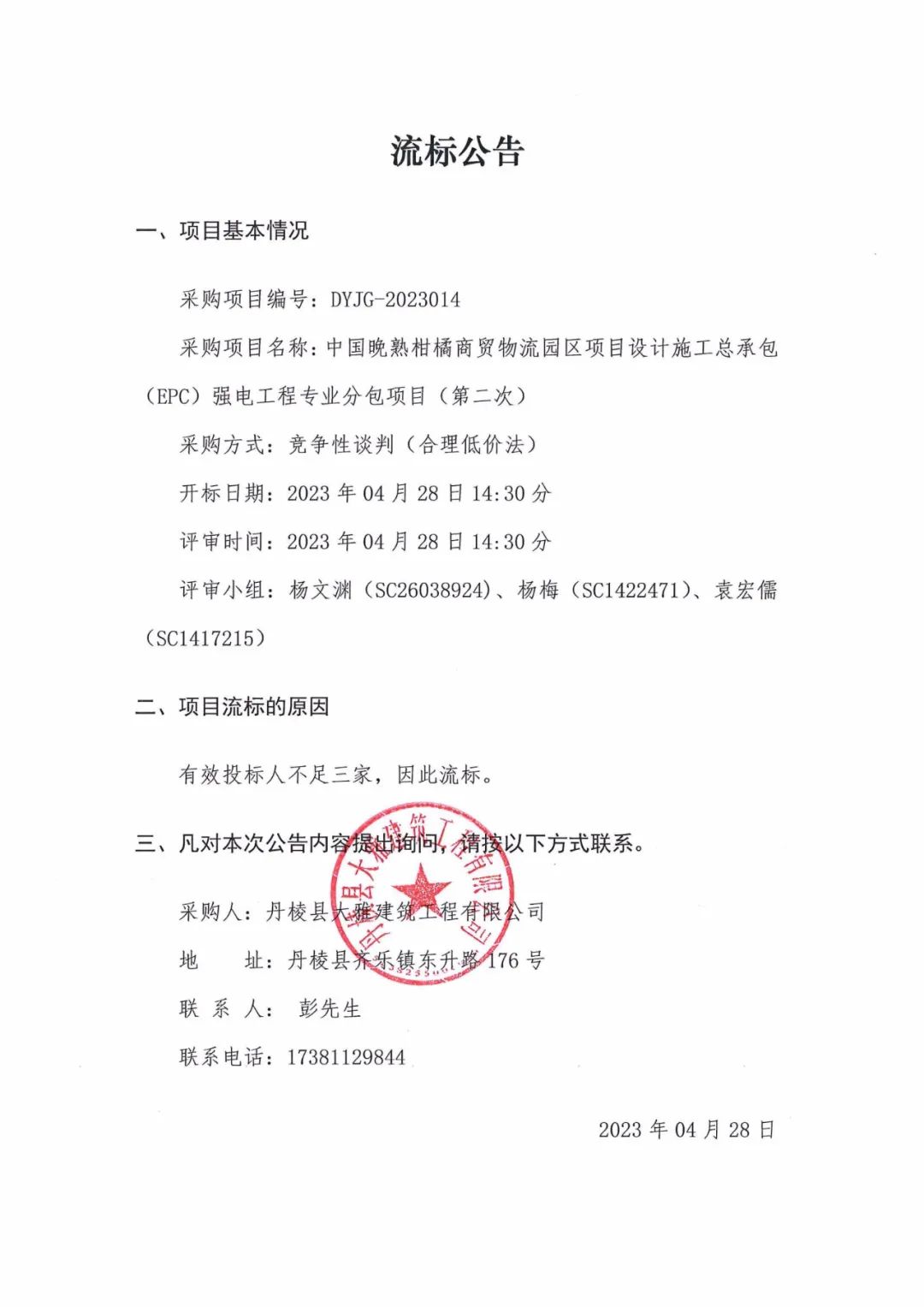 中國晚熟柑橘商貿(mào)物流園區(qū)項(xiàng)目設(shè)計(jì)施工總承包(EPC)強(qiáng)電工程專業(yè)分包項(xiàng)目(第二次)流標(biāo)公告
