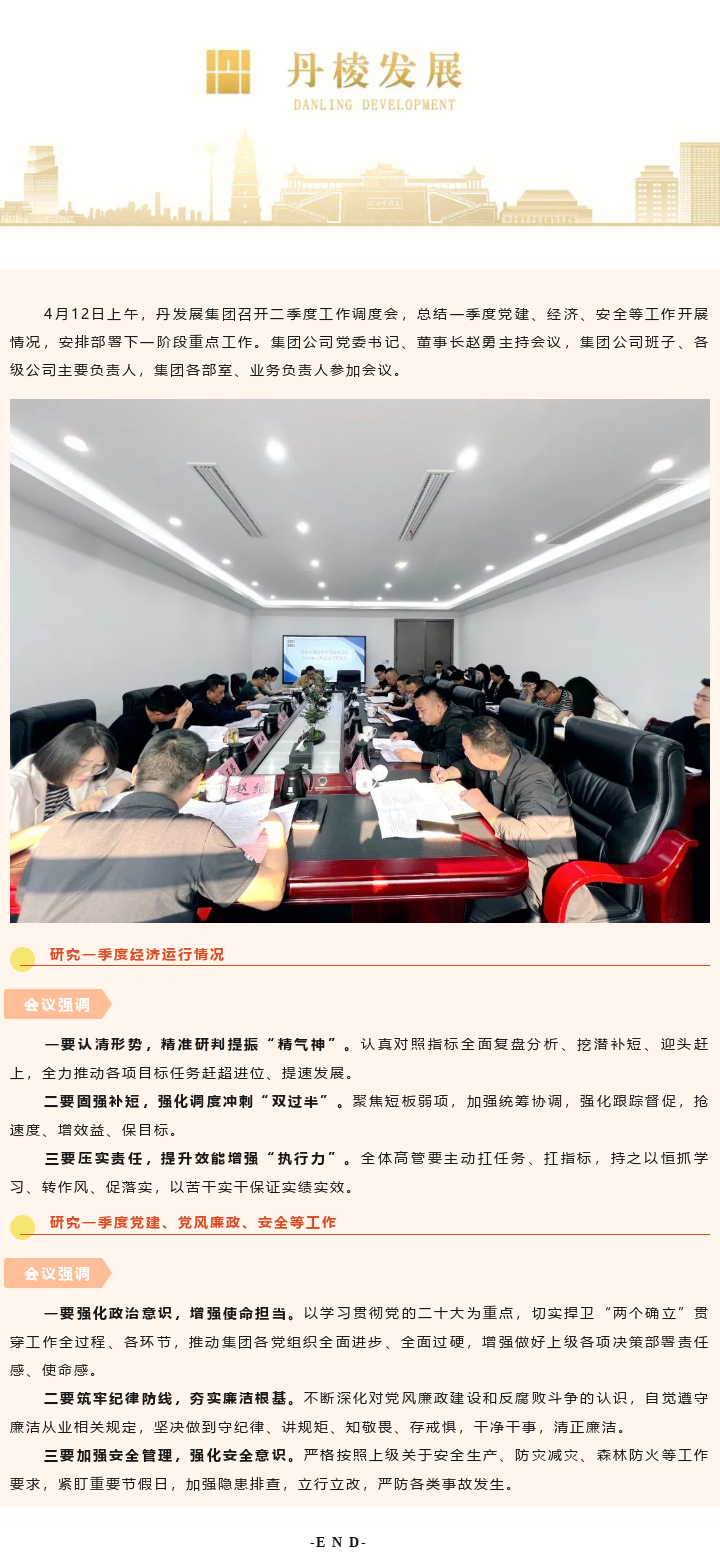 全面盤點提效能 昂首奮戰(zhàn)“雙過半”——丹發(fā)展集團召開二季度工作調度會