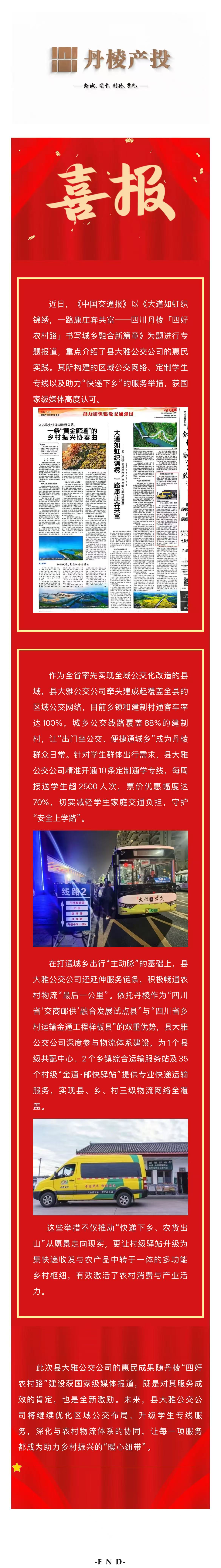 【縣交投公司】喜報!丹棱大雅公交惠民實踐登《中國交通報》,區(qū)域公交、學(xué)生專線與快遞下鄉(xiāng)織密幸福網(wǎng)