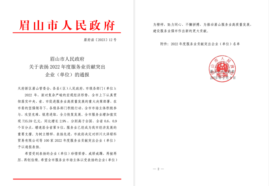 《關(guān)于表揚2022年度服務(wù)業(yè)貢獻(xiàn)突出企業(yè)(單位)的通報》