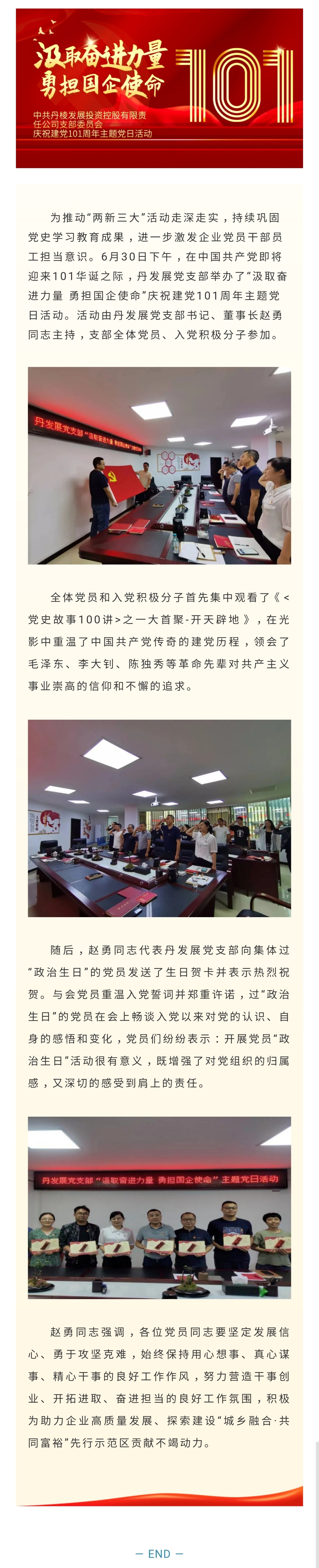 中共丹棱發(fā)展投資控股有限責任公司支部委員會“汲取奮進力量 勇擔國企使命”慶祝建黨101周年主題黨日活動