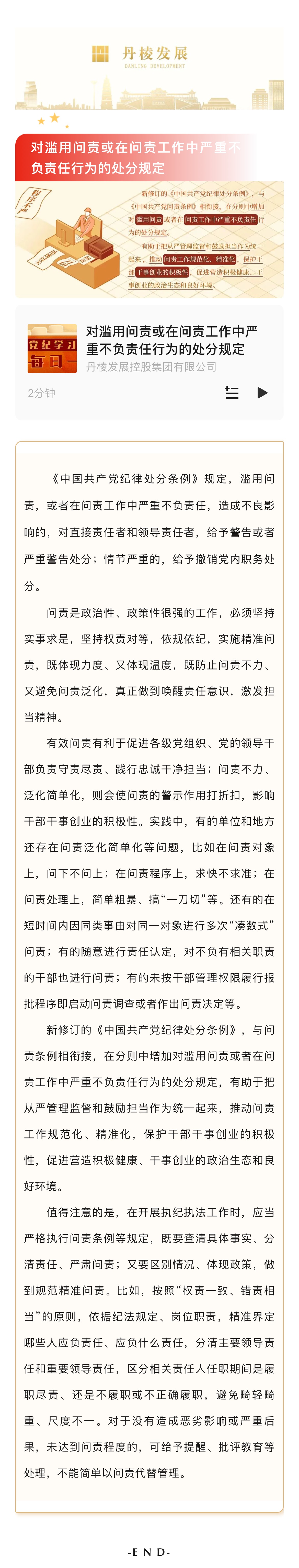 【黨紀(jì)學(xué)習(xí)教育】每日一課丨對濫用問責(zé)或在問責(zé)工作中嚴(yán)重不負(fù)責(zé)任行為的處分規(guī)定